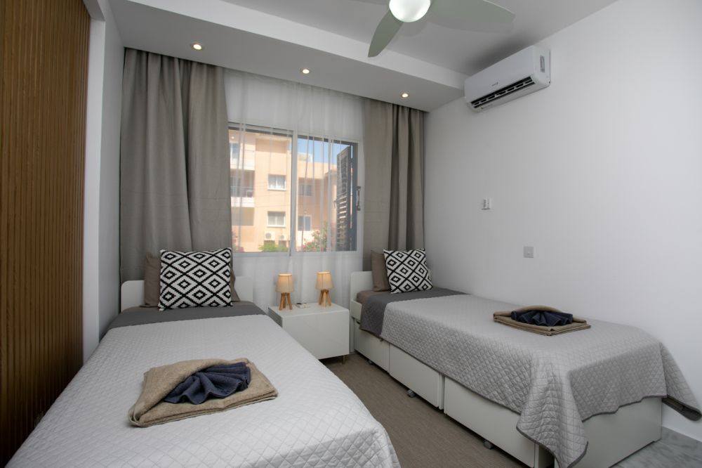 Obiekt Joanne's lovely 2 bedroom apartment - Położony jest w idealnej lokalizacji w miejscowości Pafos, 600 metrów od Plaży Lighthouse oraz Kefalos, 150 metrów od Kings Avenue Mall, 1,2 km do Grobowców Królewski oraz Portu Paphos. Obiekt oferuje bezpłatne Wi-Fi, klimatyzację, odkryty basen oraz taras. Na terenie obiektu znajduje się prywatny bezpłatny parking.